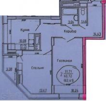 2-комнатная квартира в Железнодорожном р-не, 62 кв.м |